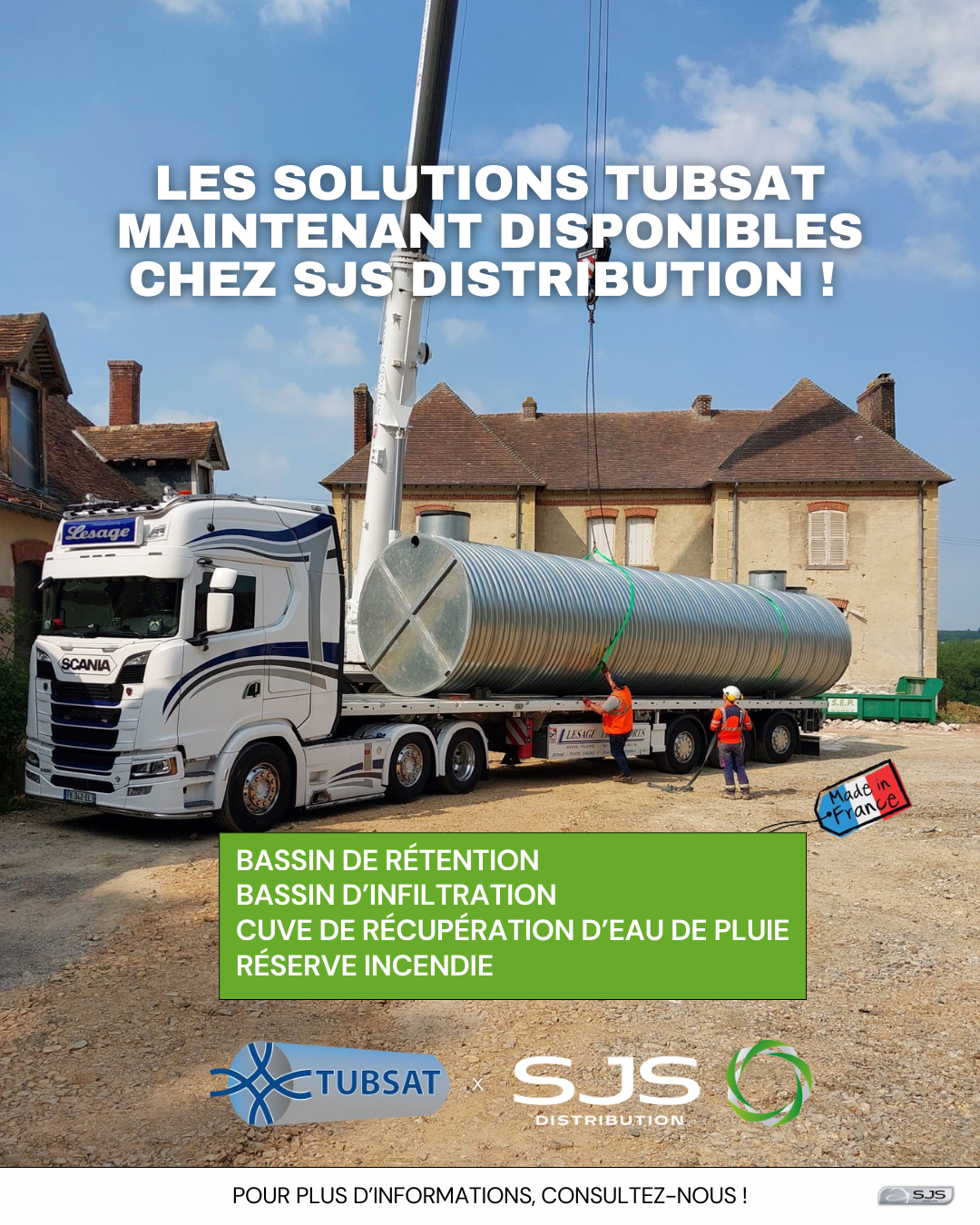 Pour répondre aux enjeux de la gestion des eaux, nous avons sélectionné la gamme TUBSAT, reconnue pour sa fiabilité et sa fabrication française. Que ce soit pour le stockage ou l'infiltration, nous couvrons l'ensemble de vos besoins :