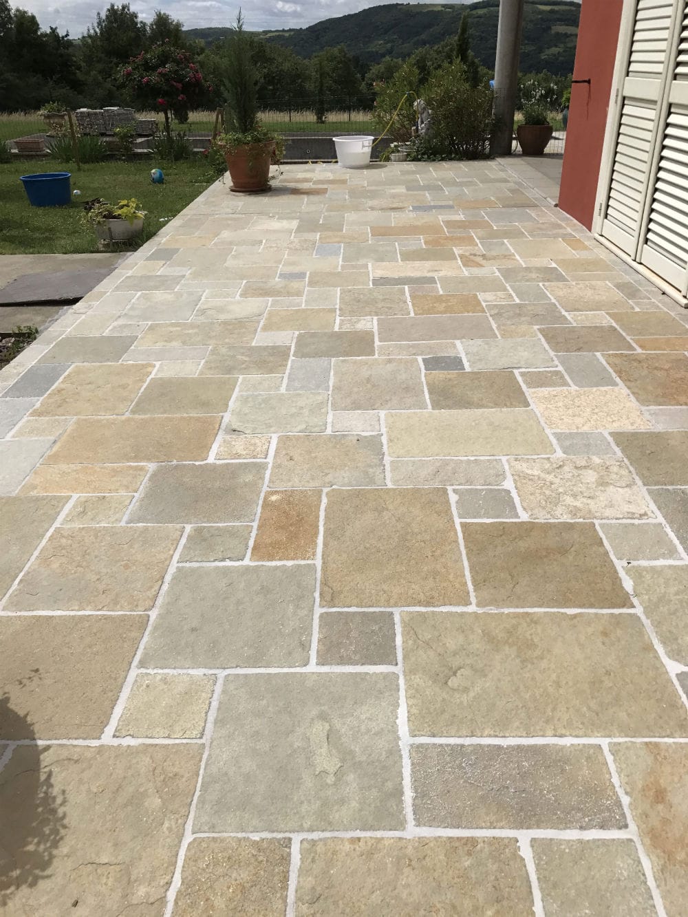 Très utilisée pour les terrasses et allées, elle apporte un style épuré, chaleureux et durable. Son format régulier en fait une pierre facile à poser.