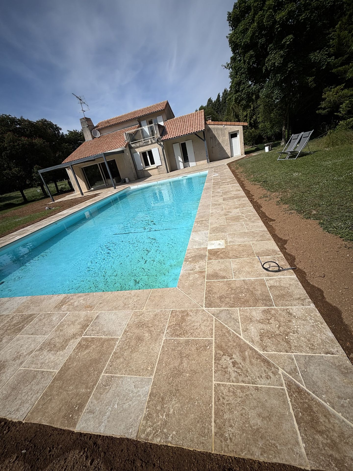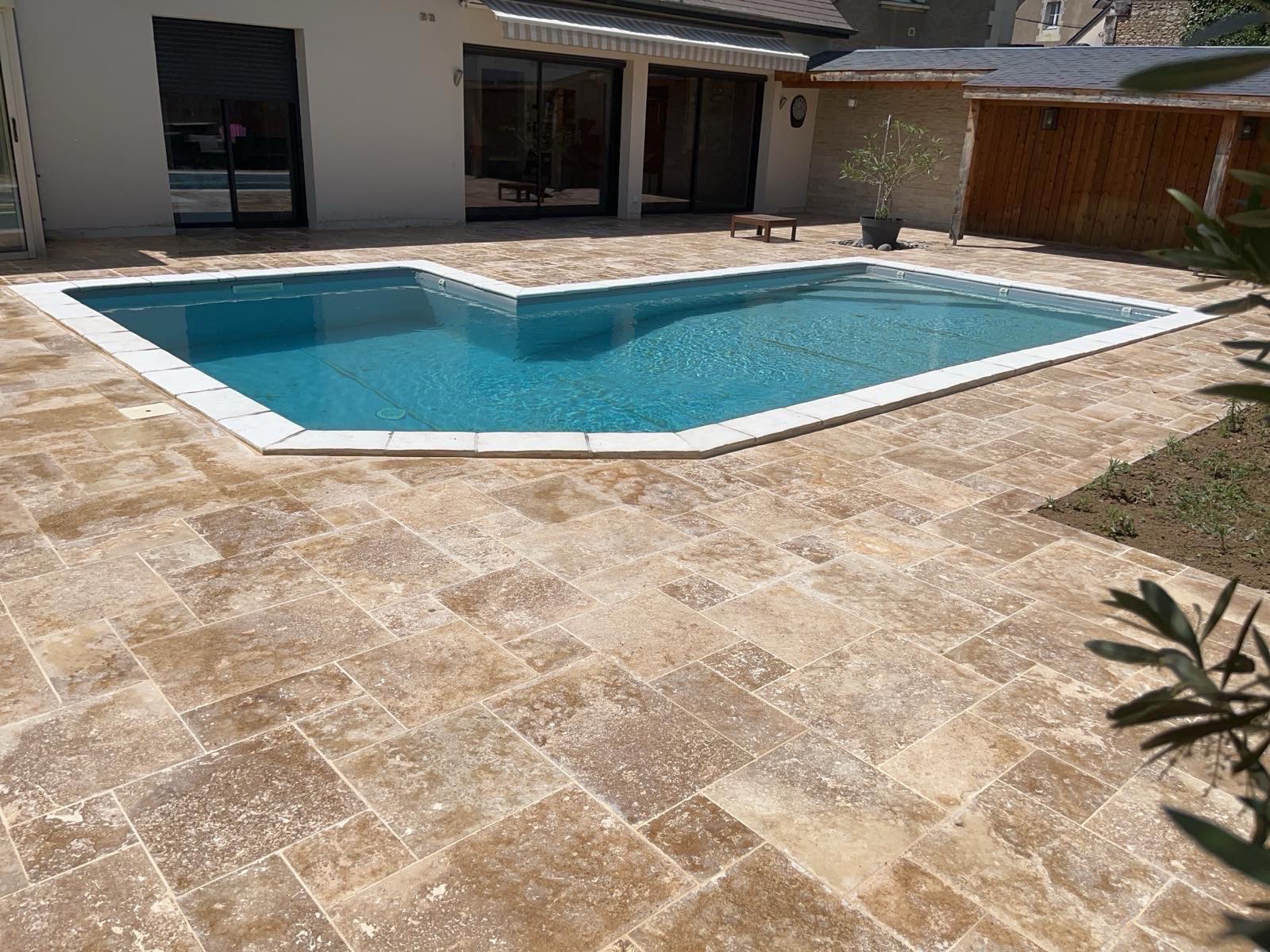 Dalles, opus, margelles de piscine, margelles d'angle, pavés ou encore escaliers romains : découvrez nos nombreuses références en travertin.